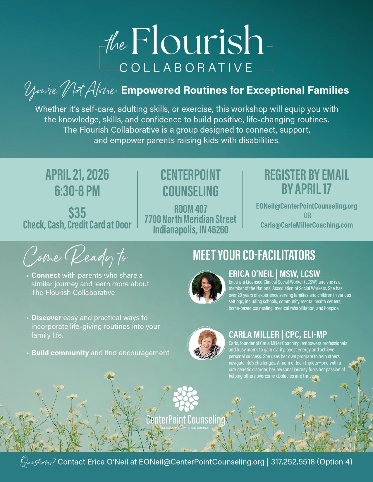 Whether it’s self-care, adulting skills, or exercise, this workshop will equip you with the knowledge, skills, and confidence to build positive, life-changing routines. The Flourish Collaborative is a group designed to connect, support, and empower parents raising kids with disabilities.